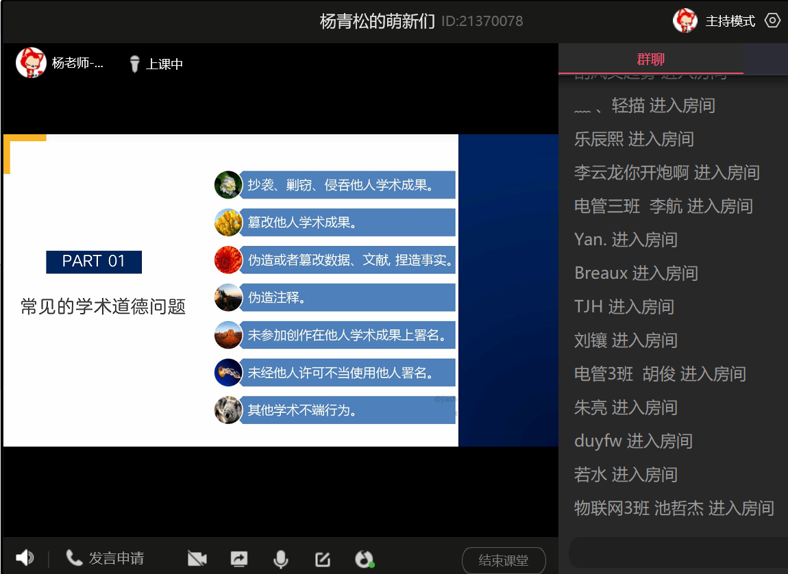 主题班会是系列活动的重要组成部分。学院尤其重视毕业班即将面临的毕业论文写作,面对已在校外实习的毕业班同学,各辅导员紧抓不漏的分别进行了线上班会,班会过程中师生们围绕学术道德和学术规范展开讨论,分享了自己在学术研究中的感悟和体会。通过交流和讨论,大家对学术道德和规范有了更加深刻的理解,并表示将严格遵守这些准则,共同维护学术的尊严和权威。