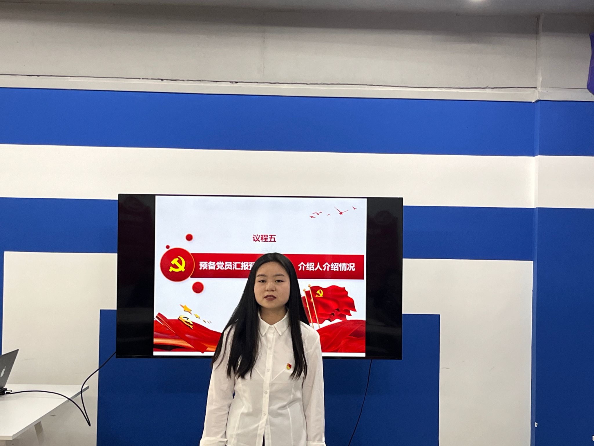 会议严格按照党组织所规定的预备党员接收及预备党员转正的程序进行。会议伊始,全体参会人员共唱“中华人民共和国国歌”。随后,何浪等3名发展对象依次上台发言,逐一向党组织介绍自身情况,阐述入党动机,并由入党介绍人对发展对象是否符合党员条件发表意见。紧接着,由支部组织委员黄真向大会报告何浪等3名发展对象的现实表现考察以及综合政治审查情况,与会中共正式党员对发展对象是否符合党员条件发表意见,并进行投票。经与会中共正式党员无记名投票表决,大会一致同意接收等何浪等3名同志成为中共预备党员。
