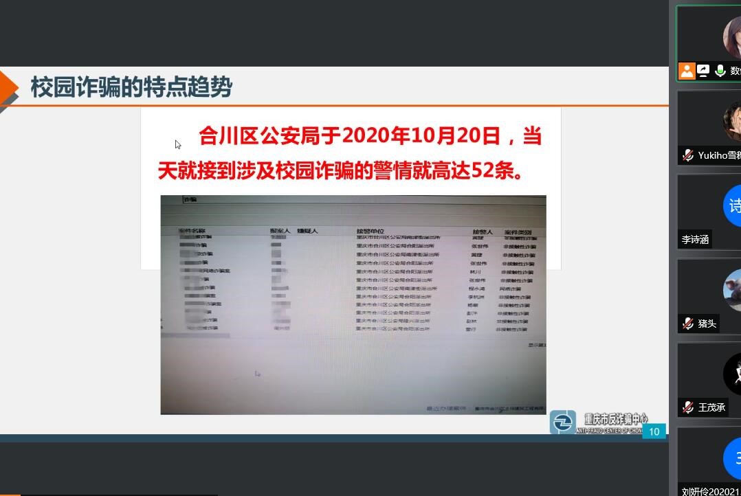 吴老师也提醒同学们在新的一学期里仍需不断提高个人安全防范意识,不轻信陌生人的信息,更好地保护个人信息、人身及财产安全,理性消费不借校园贷,远离校园诈骗、社会诈骗等;遵纪守法,恪守学校的规章制度,加强网络文明建设,完善舆论危机预防机制,营造健康积极的网络环境。