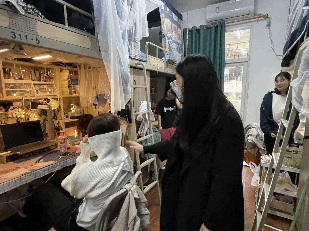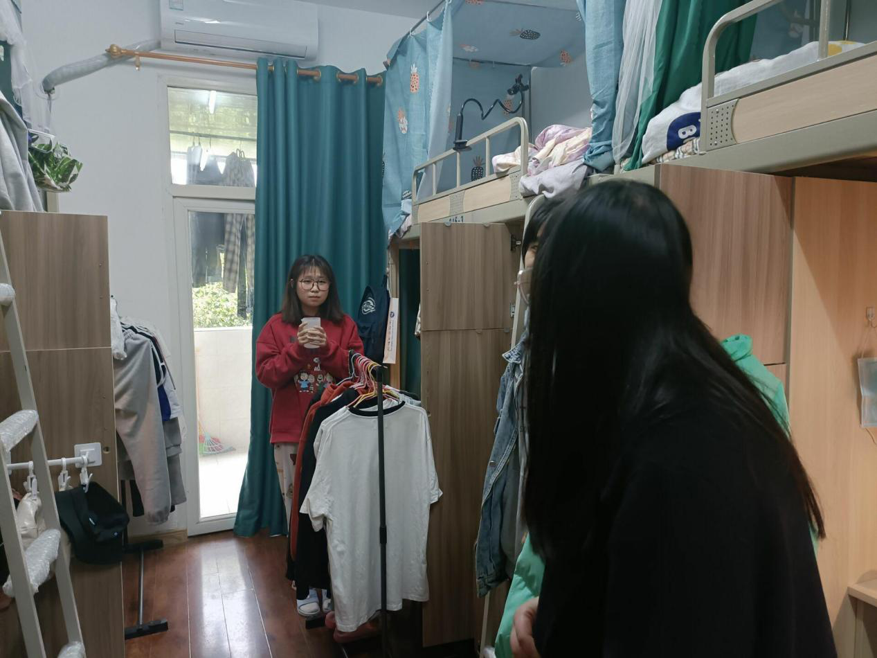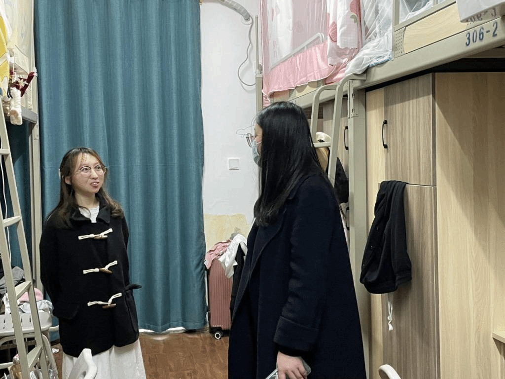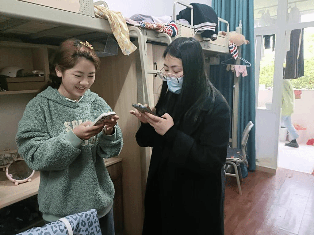 随着疫情的发展,人们对此有了更多的关注,在一定程度上会给同学们带来一些焦虑和担忧。为了解同学们疫情封校期间的心理状况,并及时加以疏导。2022年4月1日星期5下午5点2021级辅导员王瑞老师带领权益部走进寝室,和同学们进行沟通交流。
