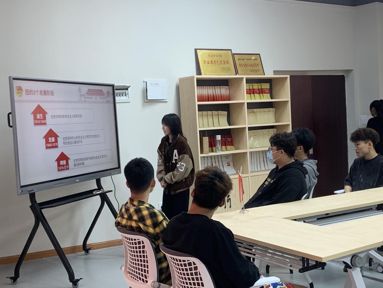 数字经济与信息管理学院数字经济01团支部响应共青团号召,选择“喜迎二十大、永远跟党走、奋进新征程”主题教育实践活动作为贯穿2022年团日活动主题,于2022年4月15日下午16:00开展四月主题团日活动。以思想学习与实践活动相结合的形式,契合建团100周年重要历史时刻,通过思想教育加强团支部成员团史知识学习,提高团组织成员的政治素养;结合实践活动让支部成员亲手参与,增强团员对支部认同感、归属感、使命感,极大程度上增强团支部凝聚力,对本支部未来发展建设起到积极作用。