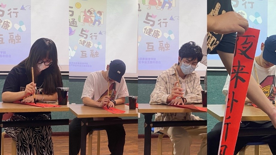 “老去身犹健,秋来日自长。”在年事已高之时,依旧健康硬朗,不惧秋冬季节的漫长。在保持身体健康的同时,心理健康也尤为重要。随着本次活动步入尾声,王瑞老师上台题写对联,抒写对健康的理解,与本次活动主题相呼应。随后在场的同学们纷纷上台,举笔题字,福由字起,下笔如神,“康乐无忧亦二一,健行稳重无次第”、“老喜身犹健,闲知兴更添”……一幅幅对联,是同学们对自己未来身体的殷殷期盼。