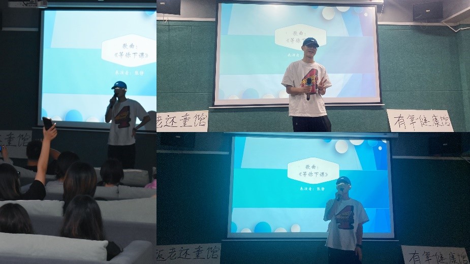 在同学们期待的目光中,活动正式开始。节目首秀是由资产评估2班的张静同学为大家深情献上一首歌曲《等你下课》。在昏暗的场景下,同学们自发的打开闪光灯,与歌曲的节奏相互呼应,随着节奏挥舞着手臂。众多挥舞的闪光灯将现场的氛围拉向高潮,现场如繁星点点,现场如颗颗明珠。
