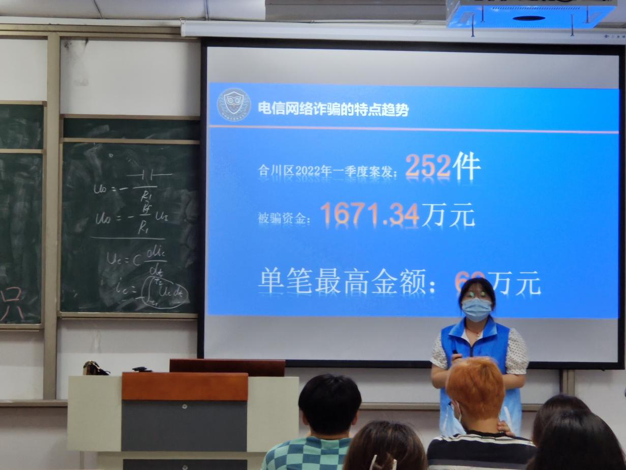 远离校园诈骗,守护财产安全。年级会进行的第二项,我们邀请猫头鹰反诈支队队长叶洪润同学为大家讲解电信网络诈骗知识,叶洪润同学讲到常见的诈骗手段分别有:网评刷单诈骗、虚假网络购物及游戏诈骗、冒充电商客服诈骗(网购退款诈骗)、贷款、办理信用卡类诈骗、熟人类诈骗等9种常见手段,同时针对以上手段讲解预防对策,警醒同学们提高自我防范意识,不要轻易上当,谨记“天上没有白掉的馅饼”。同时,呈现大量合川区及我校诈骗案件,通过反诈案例来提醒大家平时仔细甄别各类信息的意识,不要轻信来历不明的电话、短信,不要轻易透露自己的身份和银行卡信息,做好心理建设,骗后及时报警,寻求补救措施,放平心态,冷静处理。