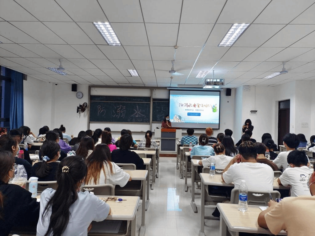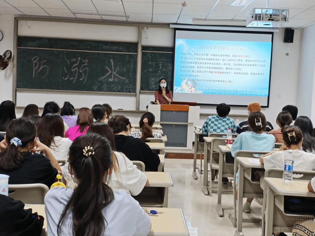 珍爱生命安全,谨防溺水发生。会议伊始,辅导员刘琳老师为同学们展开防溺水知识讲解,刘琳老师以校园安全为切口主要提到,溺水事故频发,常见原因多为:失足落水、在不安全水域游泳,下水前热身不充分,溺水事故发生后盲目施救等多方面。同时,以结合案例、播放视频的形式进行讲解溺水事故、发生的高频率和危害性及严重后果,并为同学们讲解溺水自救方法,提醒同学们树立防溺水意识,识别安全标识,了解安全知识,杜绝学生无家长陪护到河中游泳。最后向学生介绍游泳小常识,让同学们更加了解防溺水小知识,提高学生自救、自护能力,将自己的安全工作落到实处。