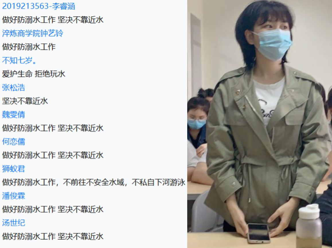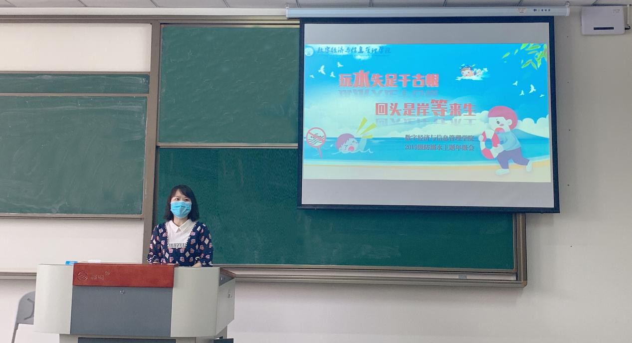 为进一步加强校园安全教育,预防溺水事故发生,提高自救、互救能力,切实保障学生生命安全。5月10日及5月11日,结合疫情防控新要求,数字经济与信息管理学院2019级“溺水警钟时常鸣 安全教育记于心”防溺水安全教育主题年级会采用线下+线上的形式分批次展开。