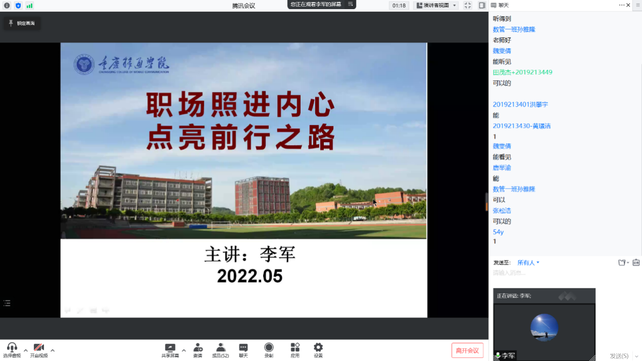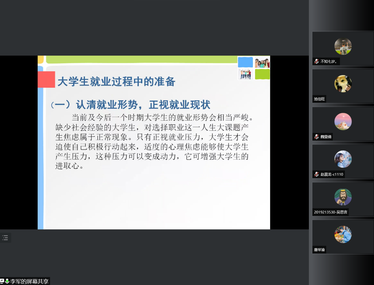 生涯即人生、生涯即竞争,生涯规划是个人一生的竞争策略规划,而简历是规划职业生涯的重要工具。为帮助同学们明确就业方向,提高简历制作能力,我院于5月12日14:30在腾讯会议线上举办“优show简历,职显芳华”——第23期求职技能训练营专题讲座。本期求职技能训练营针对我院2019级大数据管理与运用1-3班学生开展,此次有幸邀请到重庆移通学院远景学院副院长,远景通识党总支副书记,重庆市就业创业专家库成员李军老师与同学们一起探讨未来去向,明确目标。