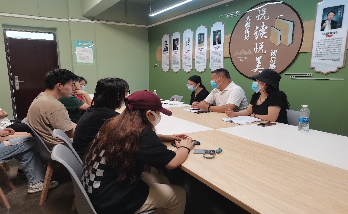 本学期的学习接近尾声,为了了解同学们的期末学习情况,解答同学们对专业知识上的问题。6月8日下午两点第16周院长接待日在双栀书院悦读吧如期与同学们见面,此次院长接待日我们邀请到了数字经济与信息管理学院院长潘显兵老师、科任老师代表冉叶虹老师、2021级辅导员王瑞老师以及2021级资产评估专业的同学们进行交流答疑。