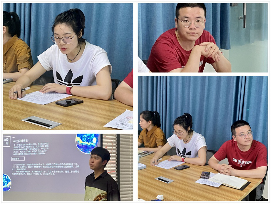 会议第一项,学院各板块老师依次汇报交流本学期工作开展情况。