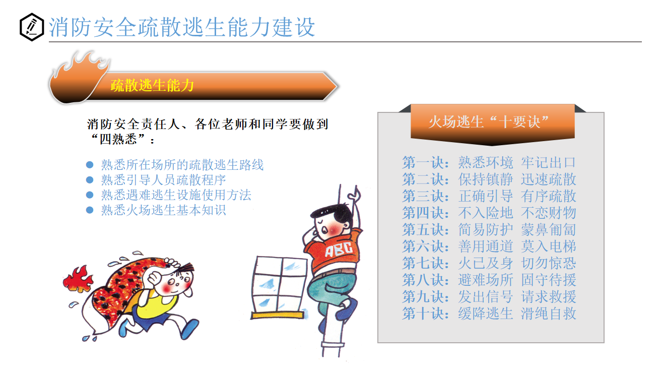 防火灾于未然,确保同学们平安度假,辅导员彭薇薇老师就消防安全提示进行介绍,提醒同学们在公众聚集场所要留意逃生路线和消防设施器材,并强调建设疏散逃生能力的重要性。同时要求同学们明确“四个熟悉”,牢记“火场逃生十要诀”,随后,彭薇薇老师带领同学们温习家庭防火小常识,希望同学们提高消防安全理念,培养消防技能。