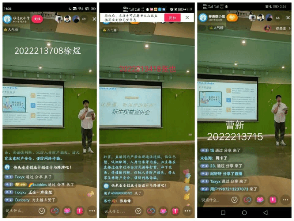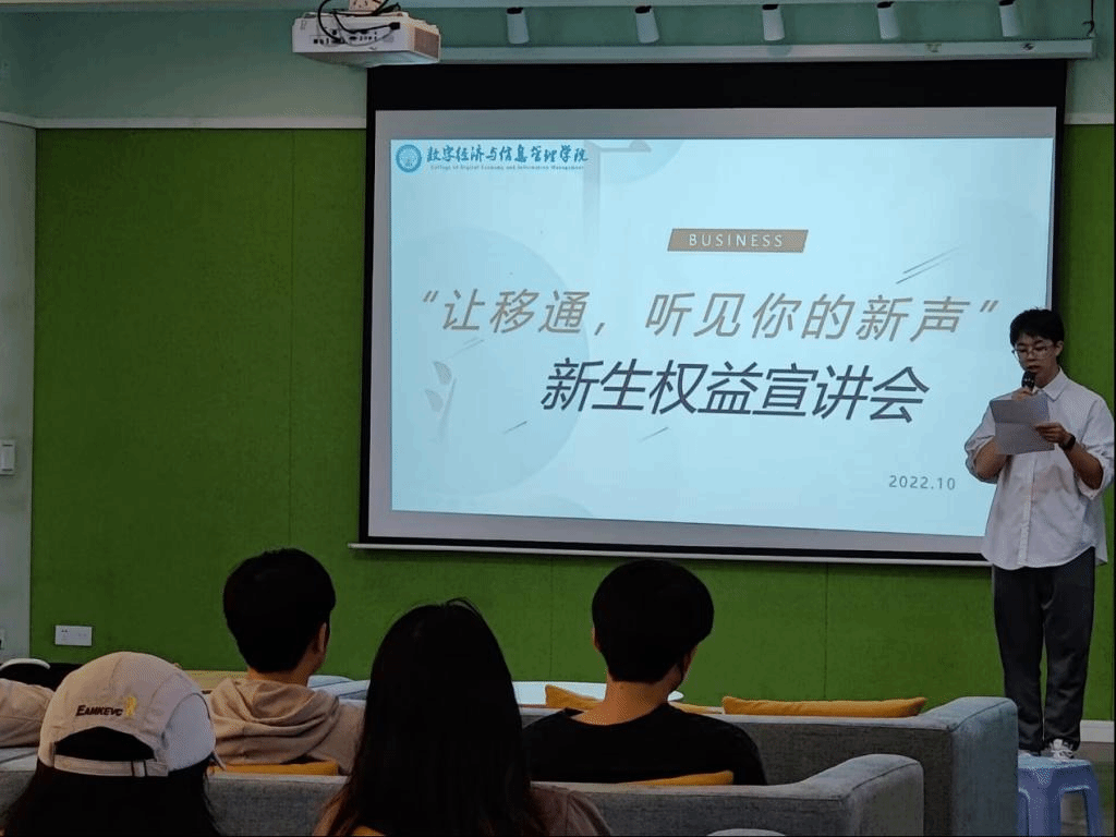 金秋十月,伴着阵阵桂香,数字经济与信息管理学院于2022年10月5日14:30-16:00在合川校区双栀书院多功能影室举办了“让移通听见你的新声”新生权益宣讲会,綦江校区的同学则通过线上会议参加,会议由权益女生部工作人员主持。主要面向的同学为2022级专升本的同学和2022级数字经济与信息管理学院的新生。所有参会同学带好口罩,积极准时到达会议现场。綦江校区的萌新们也跃跃欲试,虽然遗憾不能到达现场,但这不能消磨他们的高昂兴致,怀着期待的心情,隔着小小的屏幕,他们积极踊跃地在线上发言提问,与合川校区的同伴们进行了一场相隔百里的相知相会。