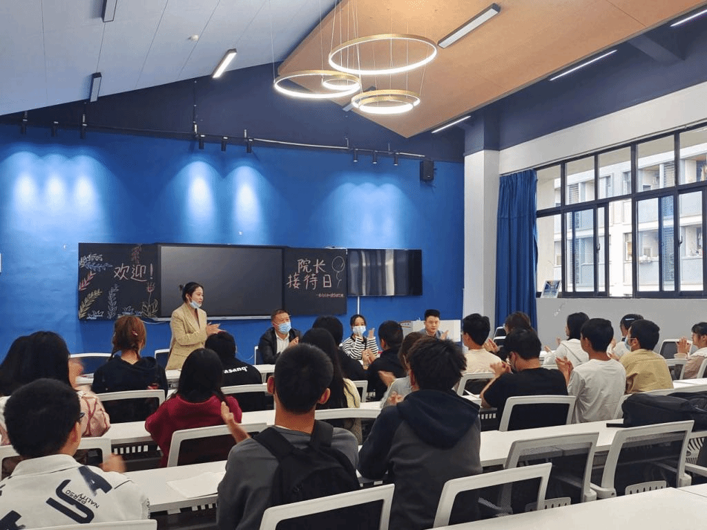 为更好地解答新生入学在学习与生活方面的疑惑,我院于2022年10月7日10时,在綦河书院智慧教室举办了“新帆启航,逐梦数信”院长接待日,此次会议邀请到我院院长潘显兵教授、学工办主任尹金维老师,辅导员老师王颖、韩玉、任超群、张焕忠以及2022级互联网金融专业的学生代表,本次接待会由2022级辅导员任超群老师主持。