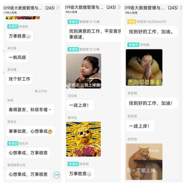凝心聚力,勇毅前行。为进一步加强同学们对当前就业形势的认知,帮助同学们树立正确的就业观念,继续提高同学们的就业能力,2019级大数据管理与应用专业于2022年10月17日20:00以线上年级会的方式开展“团结凝心新就业 筑梦聚力新能量”——2019级大数据管理与应用专业就业主题年级会。