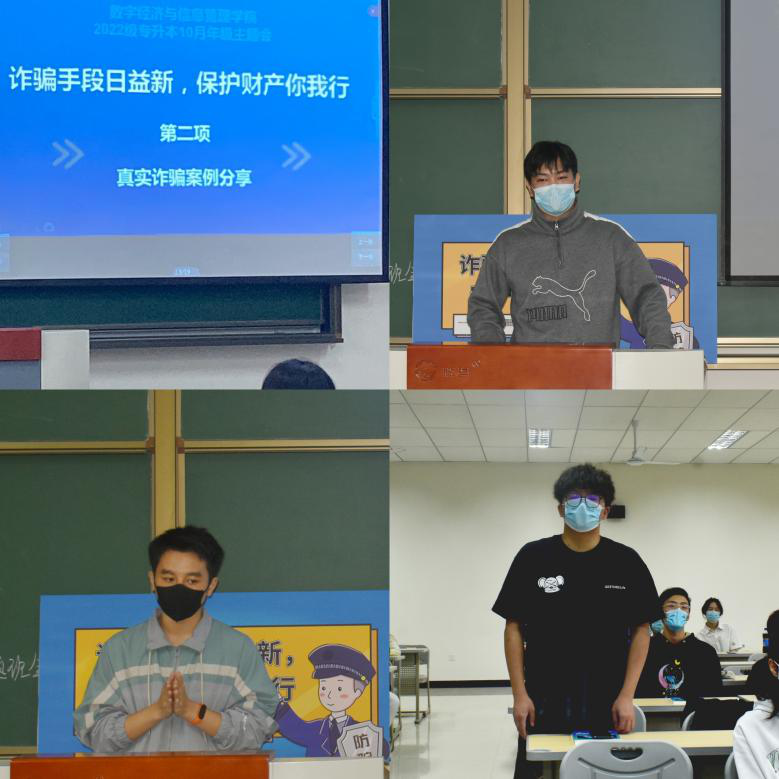 这次年级会内容非常丰富,同学们也积极的分享自己遇到的事例。在现如今的社会,诈骗案件越来越多,手段也越来越高明,要练就防诈反诈的自我保护心理意识,提高防范意识,学会自我保护,对人对事,要擦亮眼睛。