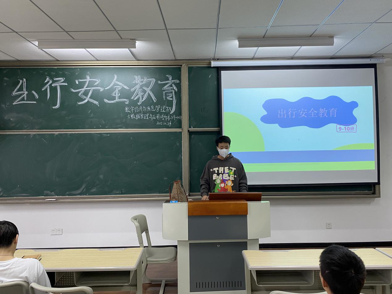 10月24日下午16时30分,为了扎实做好学生资助工作,全面落实文明交通,严防道路安全事故,打造平安校园,数字经济与信息管理学院,2022级大数据管理与应用专升本9-10班在第九教学楼9112共同开展了出行安全教育主题会议,该活动主题主要围绕学生的出行安全、校园安全和校外行车时的注意事项。此次主题会议邀请到了2022级大数据管理与应用专升本辅导员张雪老师。