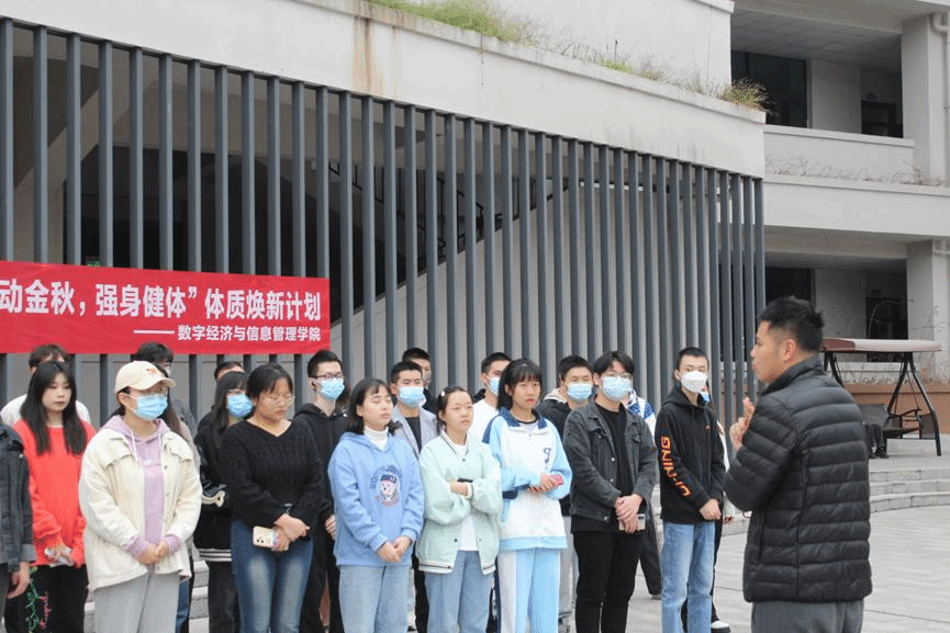 青春的你我,如同海洋中的风帆,年轻的大学生们自信飞扬,青春的气息如同出生的朝阳,蓬勃的力量如同阳光的挥洒。在这个黄金季节里,正是同学们锻炼身体的大好时光。10月28日中午12:20,数字经济与信息管理学院体质提升工程第七期“律动金秋,强身健体”体质焕新计划开班仪式正式在双栀小广场上顺利举行,本次邀请了竞技体育中心教练李游老师,数字经济与信息管理学院竞技体育版块指导老师吴生亮老师出席本次开班仪式。