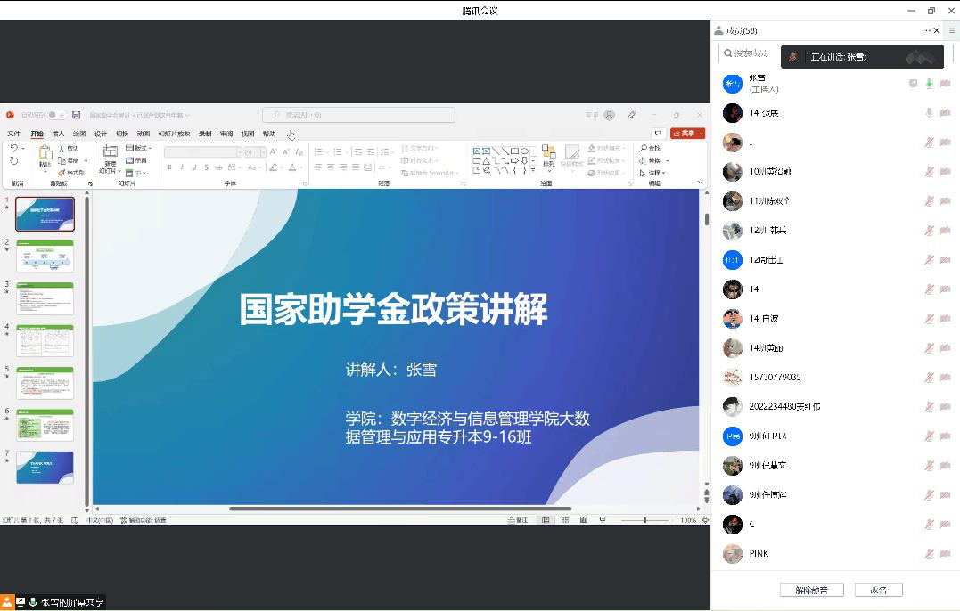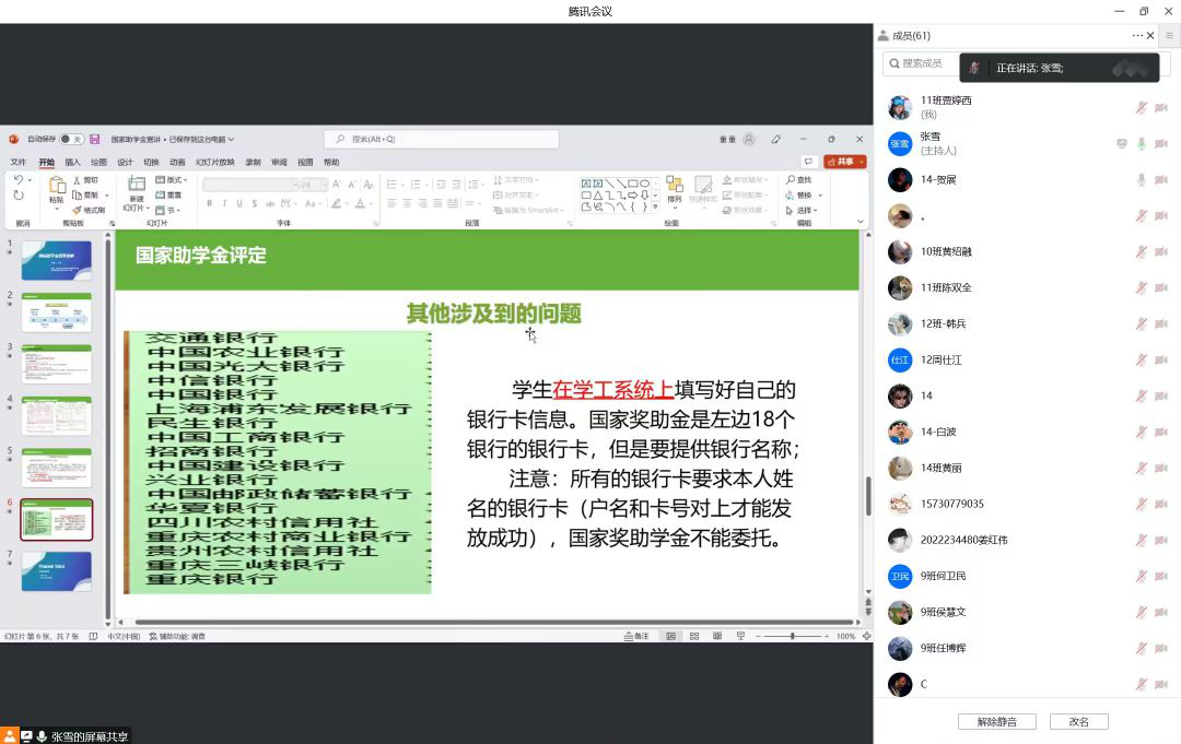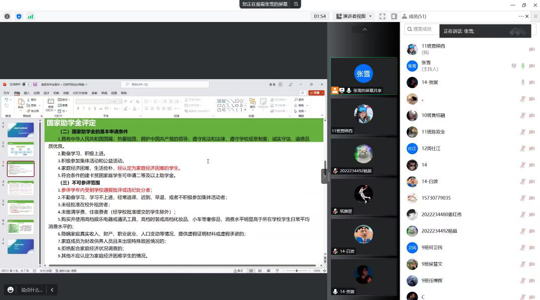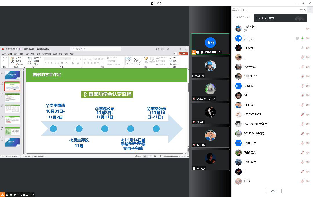 会议内容主要以讲解填写国家助学金的基本申请条件为主,获评学生应在规定时间内提交申请表等相关资料,并应确保该申请资料所填内容真实无误。