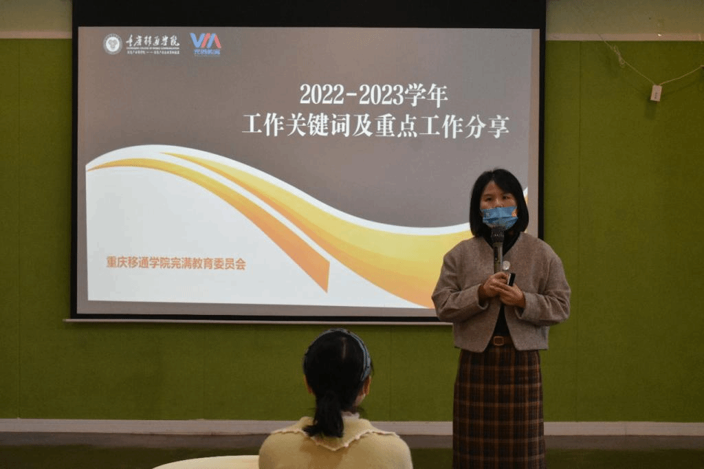 辉煌已成历史,薪火已然传递。会议步入尾声,副院长任瑞娟老师上台致辞,首先对学生组织内部工作中存在的问题做出修正,希望各部门干部干事在注重工作质量的同时也要注重工作效率,做到“焕新增效”,特此强调在这‘特殊的一年’,发展中要始终围绕十周年故事展开活动,举办同学们喜闻乐见的特色活动并提高学生们的满意度,同时也要回归于部门本身。最后强调,在疫情防控这个大背景下也要把工作重点下放在基层上,提高基层活力。通过吸取基层优秀经验,做好品牌项目,从而打造多元化社团活动。