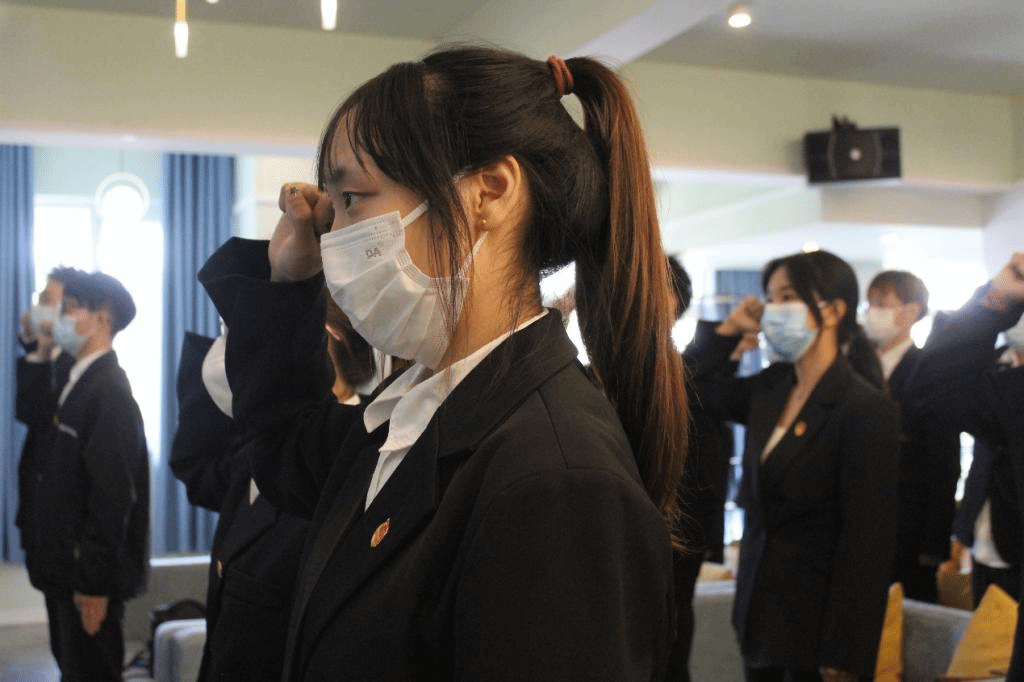 往日荣光值得肯定,前路漫漫仍需奋斗。会场奏起激昂的进行曲,标兵就位,团旗交接,标志着新老交替,薪火相传。第三届第三任团总支学生会全体成员庄严宣誓,誓为团总支学生会的发展,赓续前行,奋楫争先。成为一名学生干部不只是一种身份的象征,更是一种责任的使命担当。授牌仪式让第三届第三任学生干部们对自己身上承担的责任有进一步的理解,戴上工作牌的那一刻,责任在心中,担当负肩上。老骥伏枥,志在千里。未来路上,我们一定全力以赴。