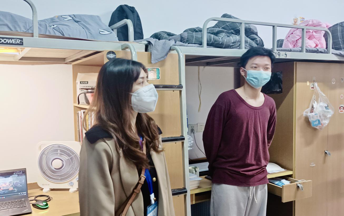 会议开展前夕,吴老师为了解同学们的学习近况,关心同学们的日常生活,与学生志愿者多次深入多个书院开展了走访调研活动。共计走访了宿舍60余间,向学生宣讲了学校的各项疫情防控政策和措施40余次,在全方位了解同学们疫情期间学习和日常生活的同时,还充分听取了同学们所提出的各项意见。