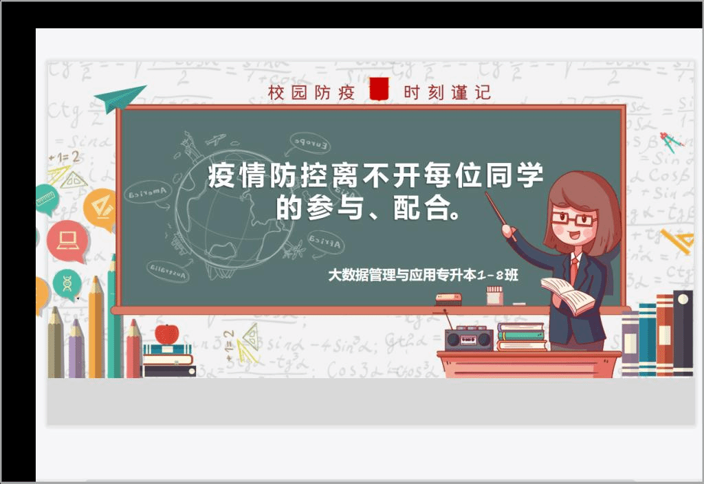 重庆新一轮疫情来势汹汹,市委市政府对高校疫情防控工作高度重视,学校党委坚决贯彻落实上级指示要求和属地疫情防控措施。为加强疫情防控期间学生的动态管理与安全教育,给同学们排忧解难,确保学校防控疫情工作有效开展, 11月19日20:00,2022级大数据管理与应用专业专升本1-8班在线上开展以“‘疫’路有我,共克时坚” 为主题的年级会议。本次主题年级会由辅导员吴丽玉老师主讲,2022级大数据管理与应用专业专升本1-8班全体同学参与。