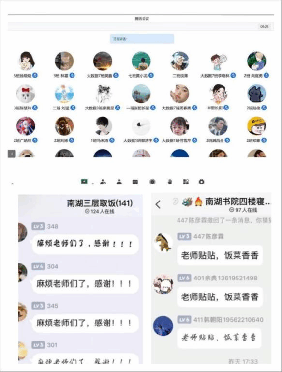会议开始,吴老师首先向同学们详细讲解了这段时间在学校的工作情况,阐述了学校在保障学生日常生活、学习需要方面所做出的的努力,特别是对处于隔离期的同学们,进行了“一对一”关怀。同时,为全面做好学生思想引领、心理疏导、餐食配送、物资分发、数据摸排、核酸检测等日常教育管理工作,学校对临时管控的学生书院,也进行了网格划分,每个区域都配备了专职辅导员、心理老师、指导老师等,为同学们各方面保驾护航。