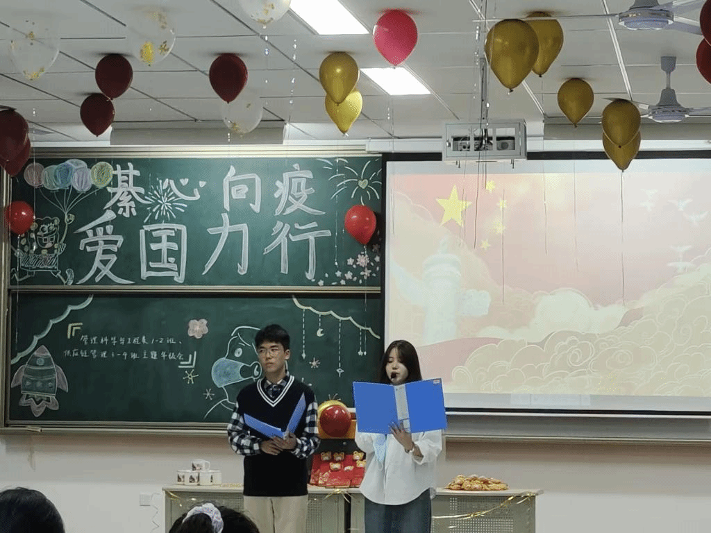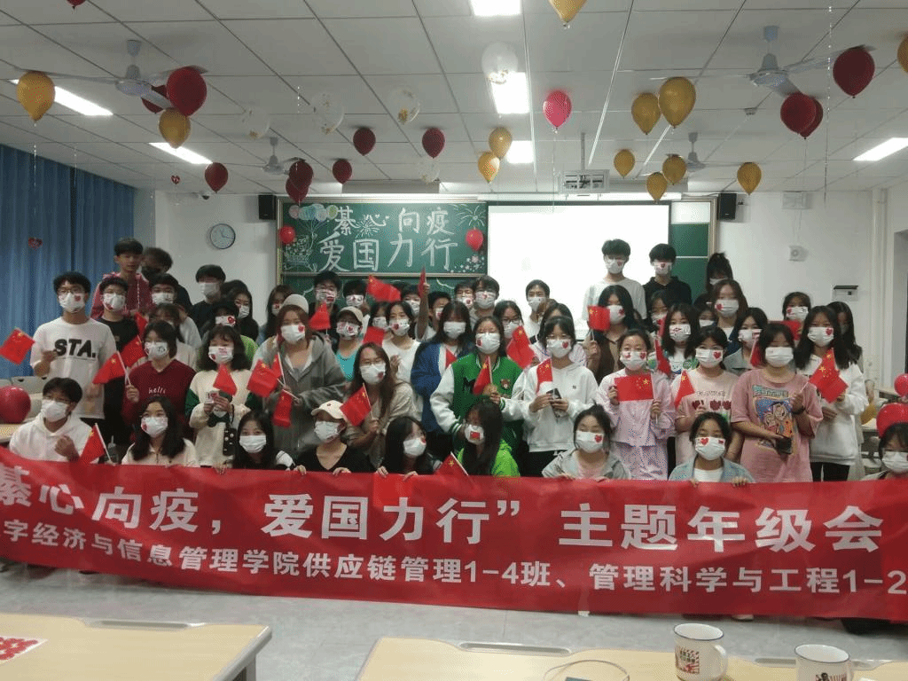 浮舟沧海,立马昆仑。为更好地将爱国主义教育贯穿于青年成长过程和各环节,深化爱国主题教育,打好人生底色。在王颖老师的组织下,数字经济与信息管理学院2022级管理科学与工程类1-2班、供应链管理3-4班于11月9日在智者楼103教室开展了“綦心向疫,爱国力行”的主题年级会。为响应国家疫情防控相关要求,本次年级会采用“线上+线下”相结合的模式,全体同学共同参与。为线下到场的同学准备了防疫口罩和实用的丰富礼品,同时在抖音上进行线上直播。
