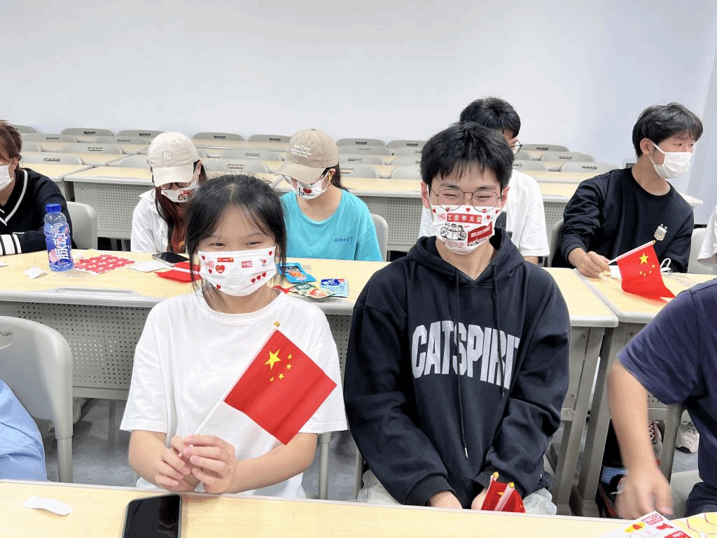 此次主题年级会,我们设置了多个展现浓浓的爱国情怀的趣味活动,如:DIY口罩、红色故事演绎、听歌明理、薪火相传活动等,激发同学们的爱国热情,铭记历史,展望未来。在DIY红色口罩这一活动环节 ,我们准备了充满爱国元素的贴纸,同学们选取贴纸后便精心地装饰起自己的口罩,同心协力,定能早日击退疫情。同学们还表演了《王二小》《雷锋》《刘胡兰》《陈独秀》等8个爱国小故事,生动的将先辈们的光荣故事演绎出来。红日初升,其道大光,时代的重任落在青年的肩上,同学们必将实现以吾辈之青春,赓续华夏新篇章。