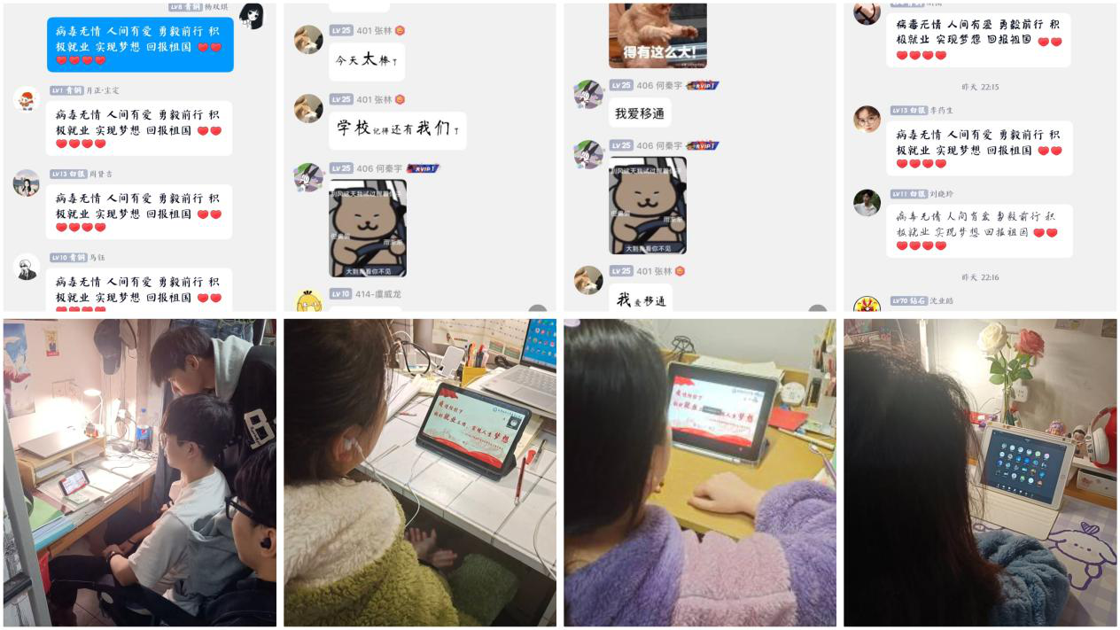 静待疫情消散,你我共赴一片花海。会议结尾,马老师为疫情下的同学们鼓舞士气,大家在线上积极回应:病毒无情、人间有爱、勇毅前行、积极就业、实现梦想、回报祖国!我们坚信,这场疫情攻坚战一定会胜利!让我们同心携手抗击疫情,早日拨云见雾,一同共赴山川大海!