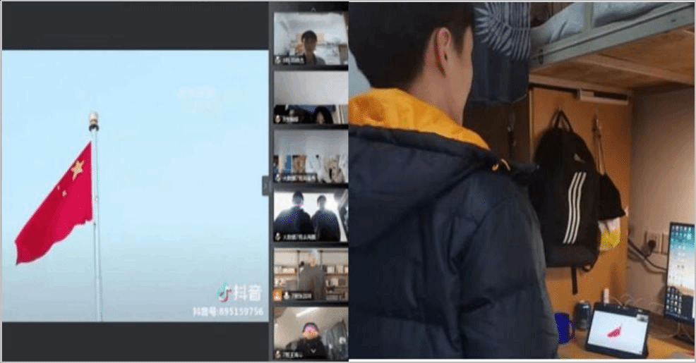 在云升旗仪式上,同学们神采飞扬、精神饱满,他们以青春之名激荡起民族复兴。纵使疫情阻隔了相见,但却阻隔不了同学们的爱国热情,在7班班长张远圳同学的激情带领下,伴随着国歌奏响,同学们纷纷起立、双手握拳,表达了对祖国的无限热爱与崇高敬意。