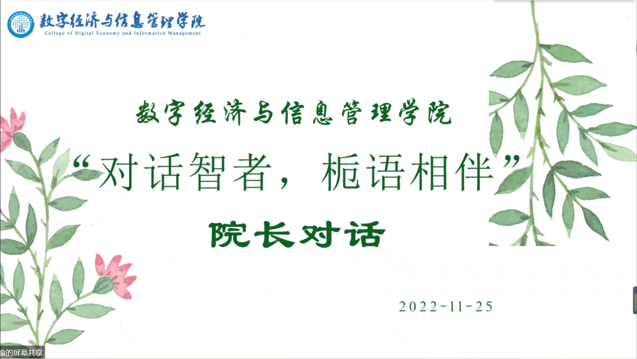 海有舟可渡,山有路可行,老师们与同学们虽相隔屏幕,但心却靠在一起。通过此次院长对话,相信同学们的疑惑有了解答,迷茫有了方向,也知道了在这特殊时期,数字经济与信息管理学院的老师们仍然牵挂着我们。寒冬终将过去,春暖花会再开。