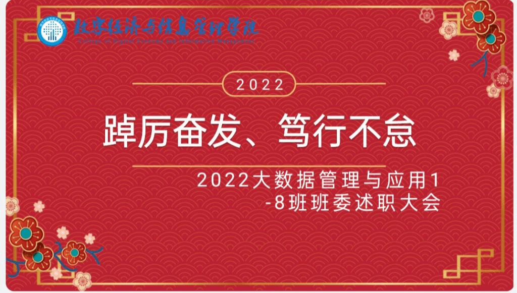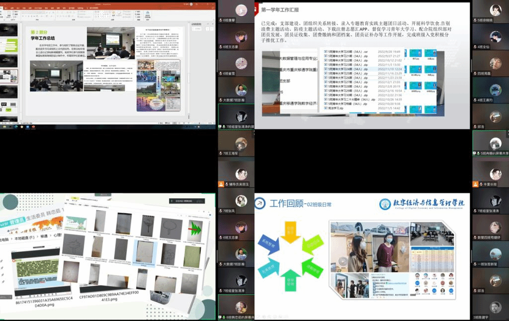 时光荏苒,岁月无痕。一学期的光阴,承载着勤奋耕耘的喜悦悄然而逝,为深刻总结自我,落实本学期的工作汇报,2022年12月29日下午,数字经济与信息管理学院2022级大数据管理与应用专业专升本1-8班第一学期班委述职大会于线上顺利召开,会议由辅导员吴丽玉老师主持,大数据管理与应用专升本1-8班全体班委参加。