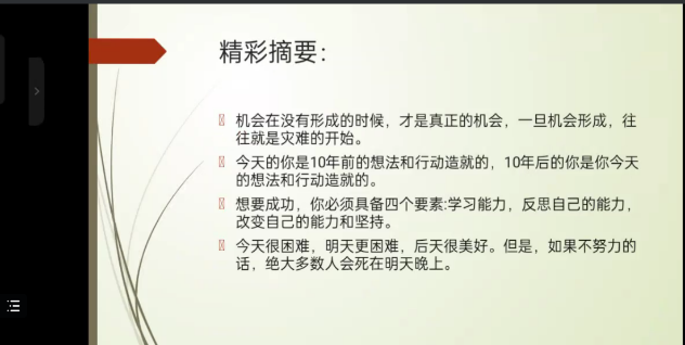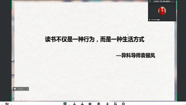 年难留,时易损。及时当勉励,岁月不待人。分享会接近尾声。由吴丽玉老师对本次分享会活动进行总结。老师首先肯定同学们即使假期也毫不懈怠的坚韧之心。相信同学们在本次活动中都受益匪浅,对阅读也有更加深刻的了解,同时鼓励大家将阅读进行到底,多读书、读好书,让书香伴你我同行。