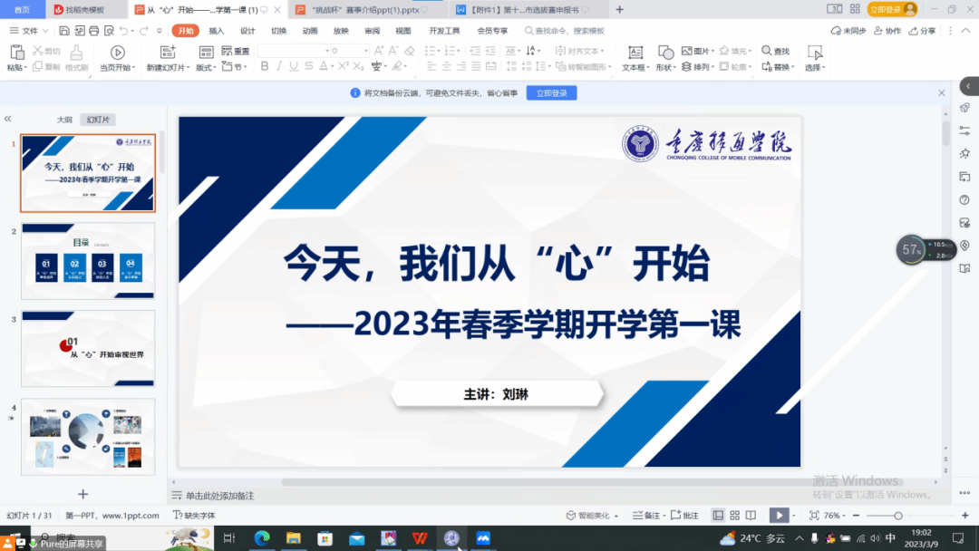 随着地方政策的放开,气氛回暖、万象更新。各行各业发展复苏,移通学子回到校园,开启全“心”校园生活。2023年3月11日,数字经济与信息管理学院2021级数字经济、供应链管理专业同学开展线上年级主题会——今天,我们从“心”开始2023年春季学期开学第一课。本次年级会由辅导员刘琳老师围绕“开学第一课”“挑战杯”赛事解读、反诈宣传三个方面进行讲解。