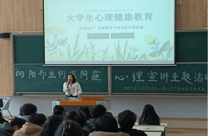 2.近几年来,大学校园不和谐现象增多,并且部分同学沉迷于虚拟的网络世界之中,甚至做出一些违法犯罪之事。许多大学生们都充满着"颓废,无聊,寂寞"这些消极不健康的心理现象。为了进一步加强大学生心理健康教育,解决大学生在面对适应新环境、不擅长人际交往、学习与生活压力、前路未知的迷茫等问题,引导大学生树立正确的人生观、价值观和世界观,增强心理素质,培养正确的心理观念。2023年3月29日下午,在横山书院阶梯教室开展以“向阳而生,何惧阴霾”主题宣讲活动。出席本次活动的有刘林林老师,还有100名来自不同学院的同学。