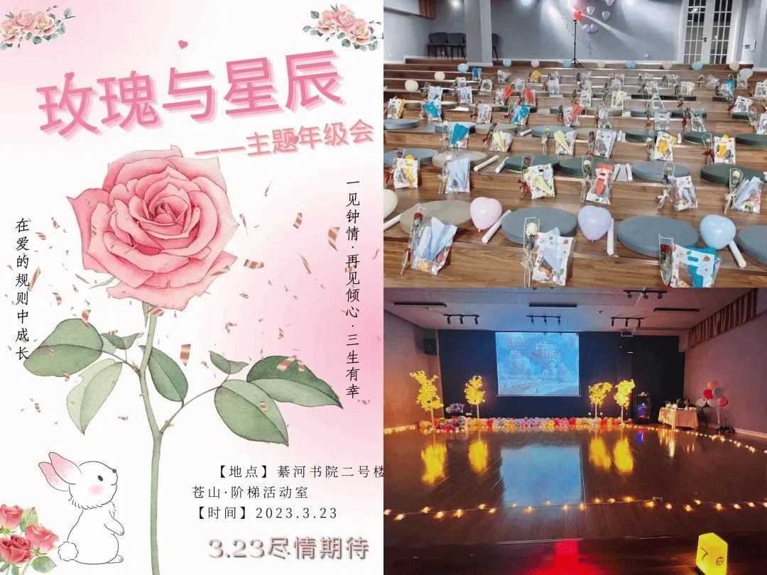 2.为加强同学们在恋爱过程中的自我保护意识,并树立起对待恋爱的正确态度,在王颖老师的带领下,数字经济与信息管理学院2022级管理科学与工程类1-2班、供应链管理类3-4班于3月23日在綦河书院苍山阶梯教室开展了“玫瑰与星辰,在爱的规则里成长”主题年级会。本次年级会采用“线上+线下”相结合的模式,全体同学共同参与。本次年级会为线下到场的同学准备了丰富礼品,同时在抖音上进行了线上直播宣传。此次年级会很荣幸邀请到数字经济与信息管理学院院长潘显兵教授,心理老师成真、王颖辅导员以及王健辅导员。