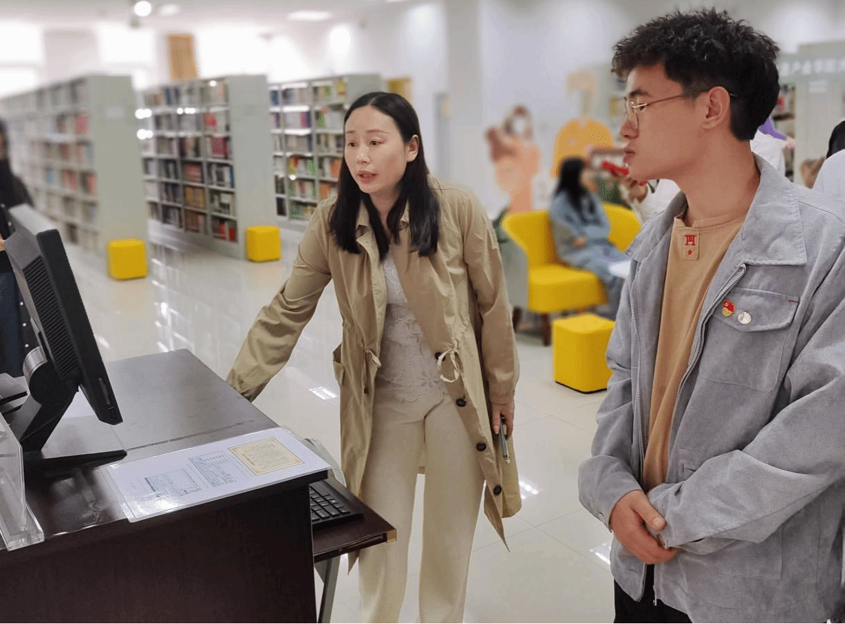 活动伊始,支部邀请到学校图书馆黄启容老师为支部同志介绍了图书馆布局、书籍借阅流程、注意事项以及如何使用图书馆设备查询书籍。黄老师通过示范讲解并邀请党员动手操作完成书籍查询,我校图书馆书籍资源丰富,黄老师也号召大家“努力在浩瀚的书海中找到当下的自己,用书籍充盈精神世界”。