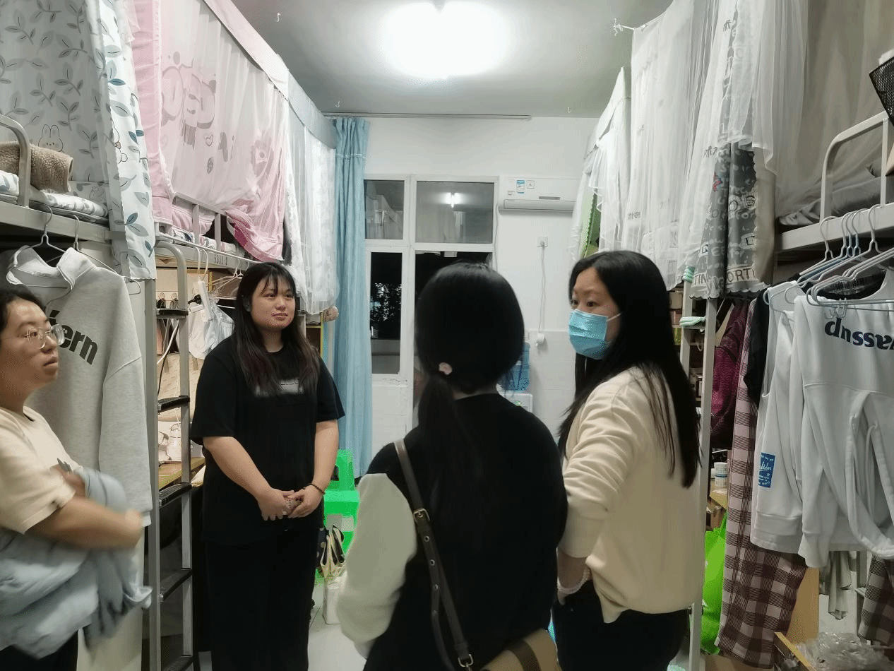 本次活动主要是为了解同学们半学期以来学习、生活情况,对五一放假的安全提醒和防诈宣传,温馨提醒同学们不要掉以轻心,做好防疫防护。老师们和权益女生部干事们礼貌敲门,悉心询问,老师们积极的解答同学们的各种问题,帮助大家更好的了解和感受大学生活。
