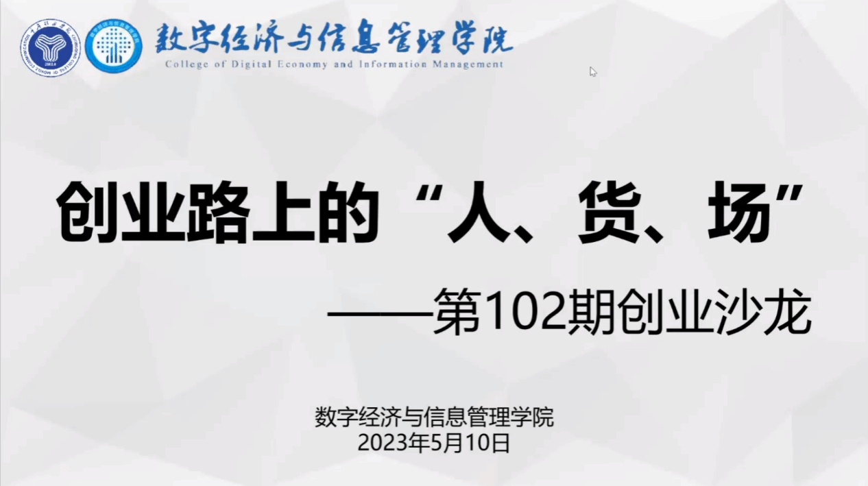 创业是创业者对自己拥有的资源或通过努力能够拥有的资源进行优化整合,创造更大经济或社会价值的过程。在大学生创业中往往伴随诸多风险和冲动,为帮助大家更好地了解创业的知识,便于日后实施创业计划。我院于2023年5月10日于线上举办了创业路上的“人,货,场”——第102期就业沙龙,此次讲座有幸邀请到了双创先锋班双创指导老师王青老师来为大家进行创业主题知识分享。
