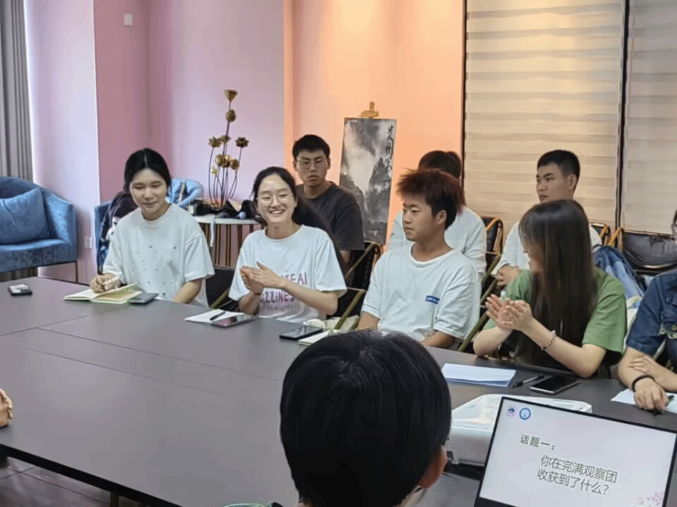 分享成长,共同进步。“你在完满观察团收获到什么?”第一个话题将交流会逐渐推向高潮,观察团成员就此问题展开讨论。黄建、张云龙同学结合自身以往工作经验、工作问题以及解决方法三方面对这个问题给出他们的理解,取得各观察员积极回应,同时也为未来开展完满观察团工作的各位成员提供一定工作方向。