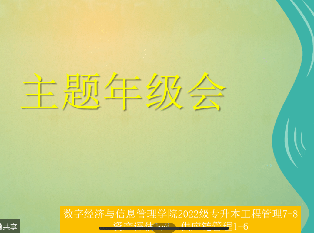 根据我校学分修读毕业需求,督促引导学生积极修读学分是一项重要工作。为让更多同学具体了解完满教育学分及完满教育学分认定工作,解决大部分同学对学分修读的问题,数字经济与信息管理学院2022级专升本供应链管理1-6班、工程管理7-8班、资产评估1-2班全体同学于2023年5月24日18时在线上腾讯会议进行此次年级会,辅导员陈西老师从学分修读和日常事务两个内容为大家进行解答。