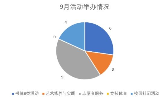 本月志愿者服务类活动共计9场,成为本次系列活动的亮点之一。同学们积极投身公益事业,参与社区服务、环保行动等志愿者活动,用实际行动传递爱心与温暖。此外,我们还举办了6场书院建设类活动,致力于为同学们提供一个舒适、优雅的学习空间。
