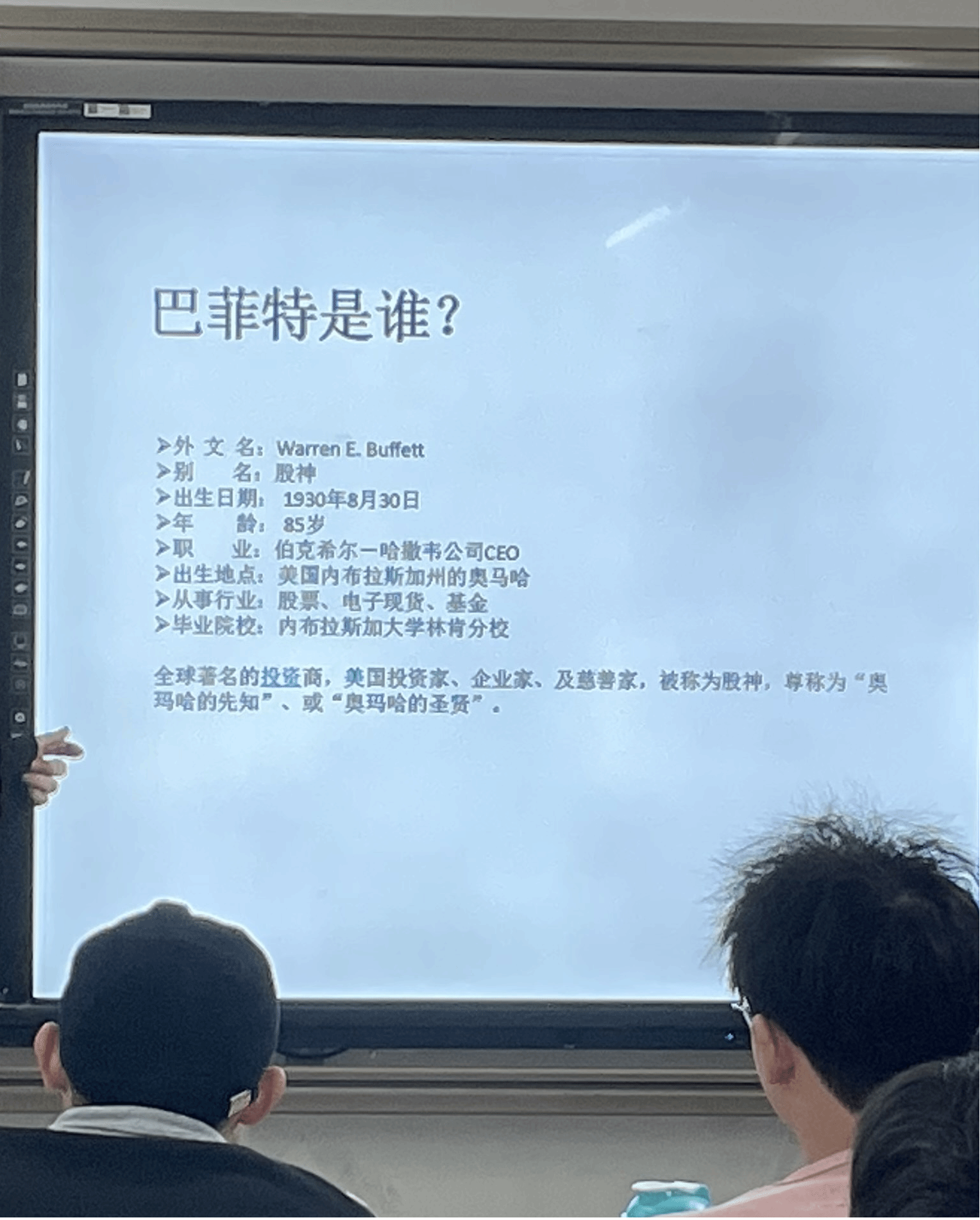 最后,廖老师也与同学们分享了一些阅读感悟,老师表示在读完巴菲特传后,对投资、人生、团队等方面都有了更深层次的理解和认识。这本书对于从事投资行业、管理行业或者想摸索人生方向都是非常值得一看的佳作。