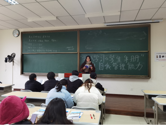 2023年12月18日,2021级信息管理与信息系统1班开展了“深入学习《学生手册》,提示自我管理能力”的主题班会活动。此次主题班会围绕着学习《学生手册》、遵守规章制度、提升自身素质等方面展开,旨在引导同学们深入了解和遵守学校规章制度,提高自身素质,为今后的学习和生活打下坚实基础。