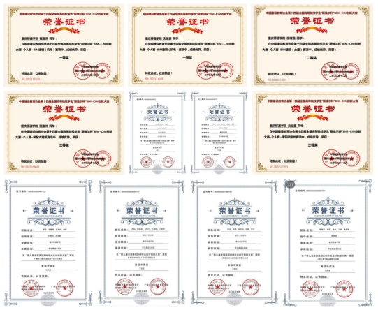 自我校BIM工坊成立以来,在各项赛事和活动中取得了丰硕的成果。第十四届全国高等院校学生“斯维尔杯”BIM—CIM 创新大赛—BIM 建模一等奖(扬州、程渔洪)二等奖(廖绪强、郭育冬)。第十五届“高教杯”全国大学生先进成图技术与产品信息建模创新大赛国赛(陈小东)等等。本学年工坊成员在“斯维尔杯”创新大赛、“高教杯”信息建模创新大赛等国赛中共计拿下 20 余次奖项,其中包括近日完结的第九届毕设大赛,我们社团成员五支队伍在各自的赛项中披荆斩棘分别斩获两项二等奖与三项三等奖。