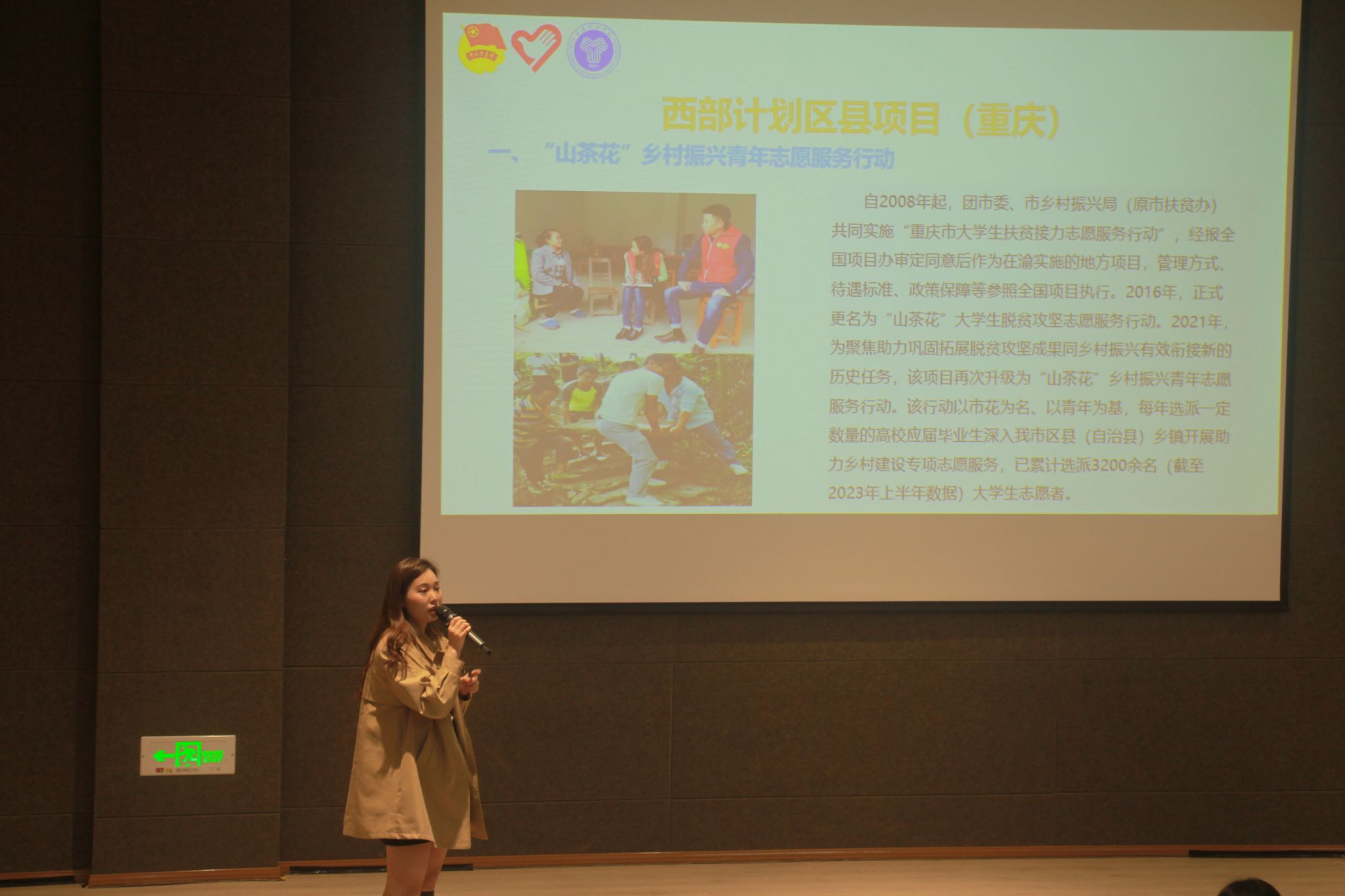 如果你喜欢浪漫,那西部也并非寸草不生。来自重庆移通学院校团委徐一丹老师向同学们详细介绍了西部计划的背景、目的、相关政策、报名流程以及选拔标准。她强调,西部计划旨在培养青年人才,助力西部地区经济社会发展,提高当地民众的生活水平。同时徐一丹老师依托我校应届毕业生的实际需求,针对性的为大家提出建议,借助西部基层故事与西部计划宣讲,促进大家为自己的人生规划做出进一步的思考。