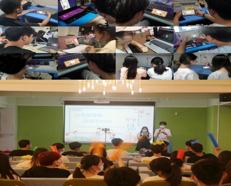 春天是健康投资的最佳季节,在经过由寒到暖的气候转变后,人体生理机能、新陈代谢也进入最活跃的时期。在疫情不断反复的当下,为让同学们关注自我健康,养成勤运动、讲卫生、合理饮食的好习惯。2020级大数据管理与应用专业全体同学于4月21日晚19:00在线上(抖音直播观看)线下(双栀多功能影音室)同时开展了以“饮食助健康,运动不emo”为主题的年级会。本次主题年级会采用“部分线下+整体线上”的联动方式进行,通过抖音直播平台进行实时直播。除了现场同学们的热情参与,线上同学们的互动也非常积极。