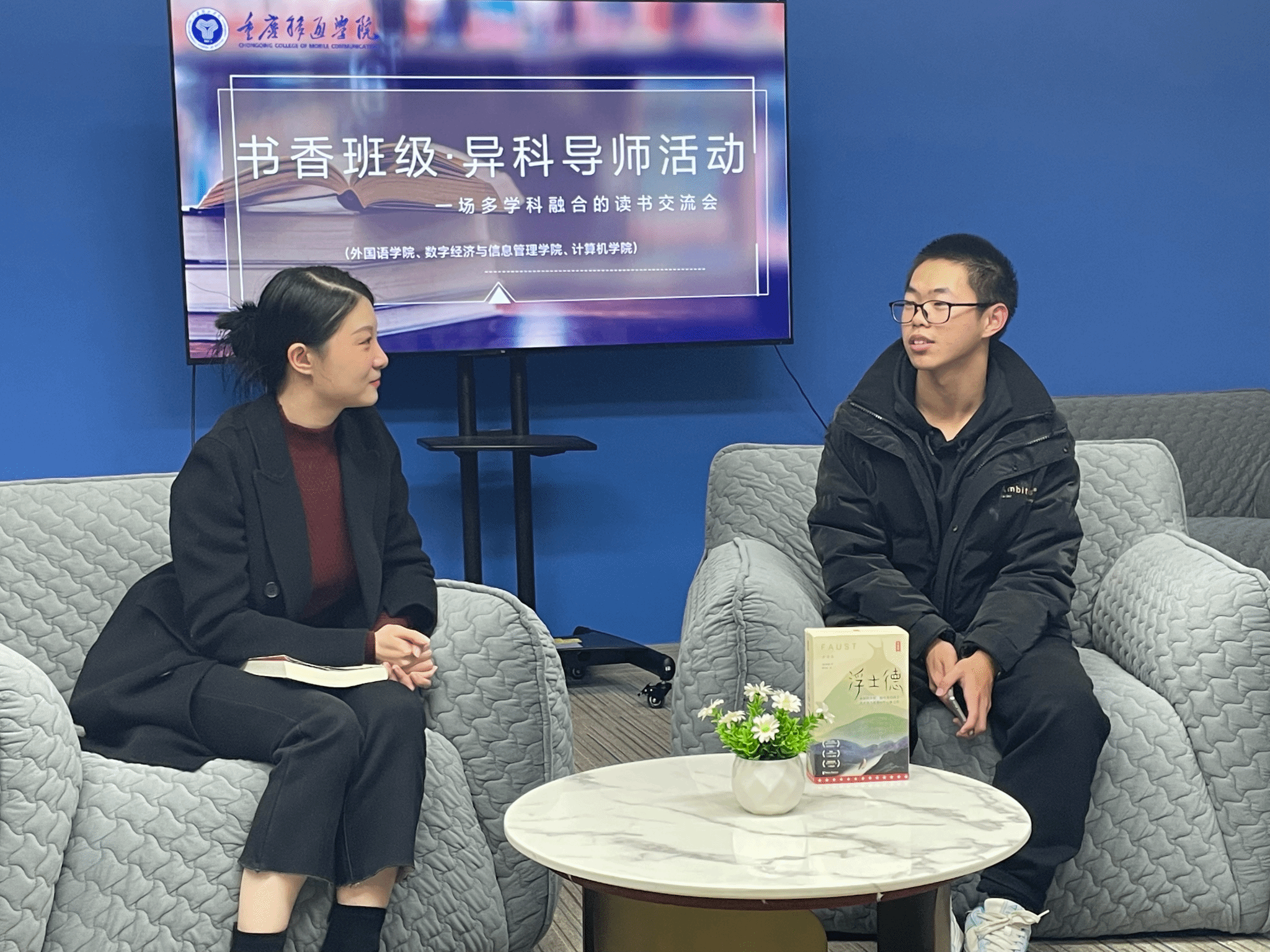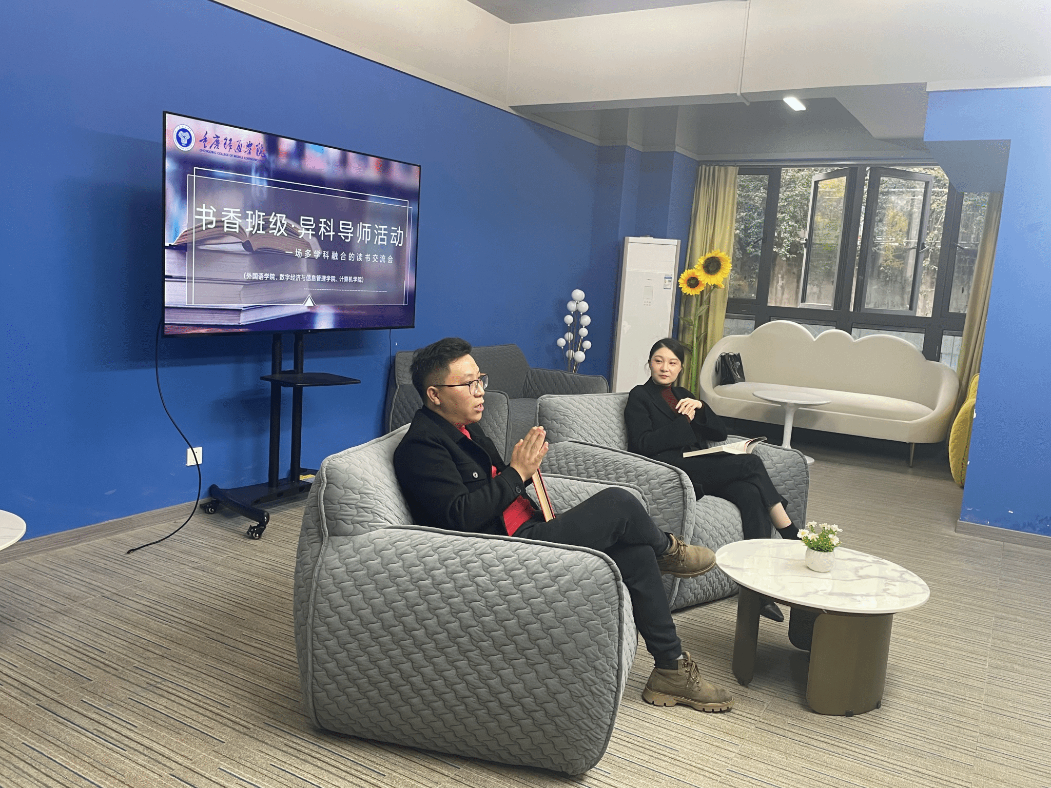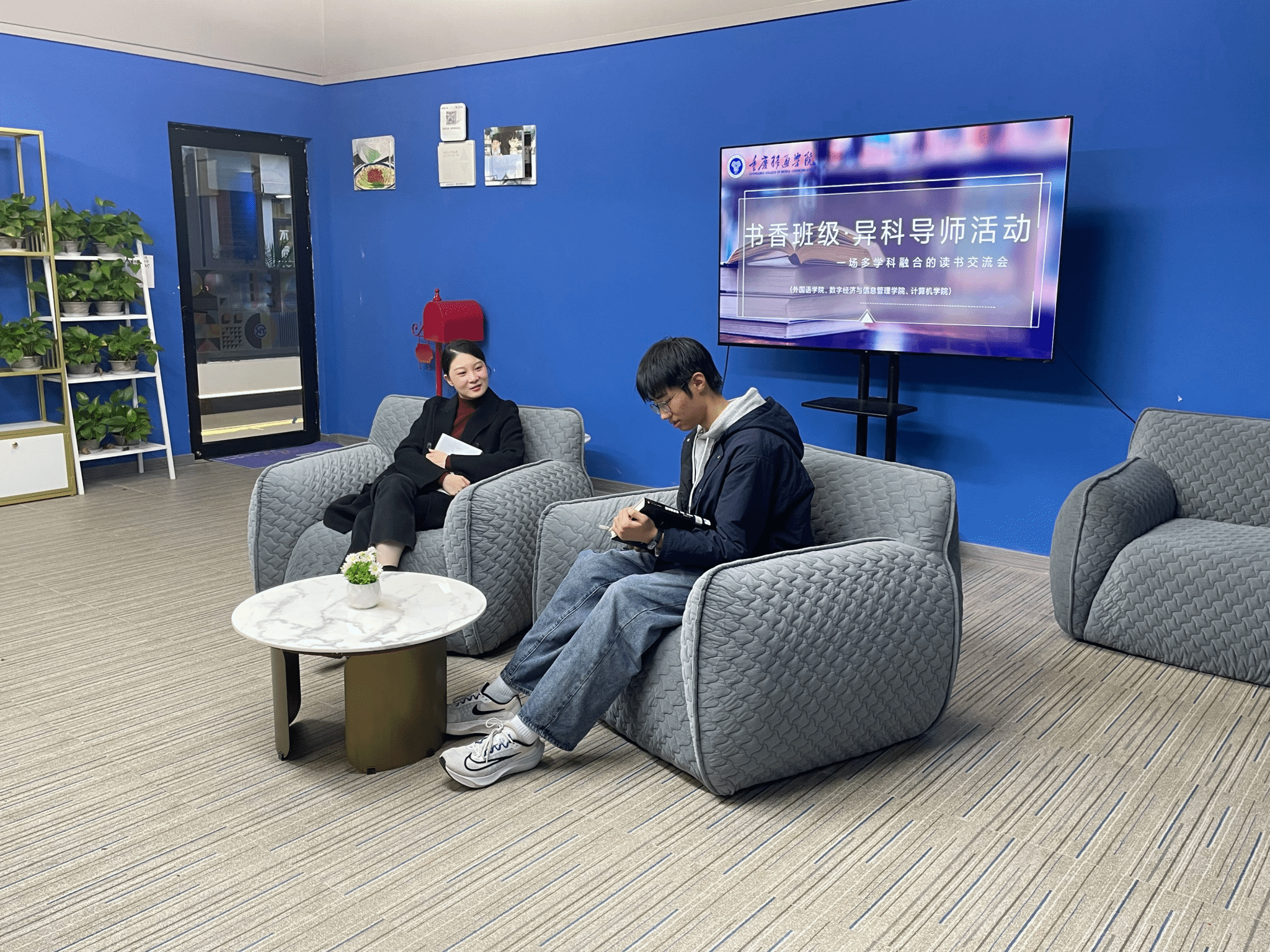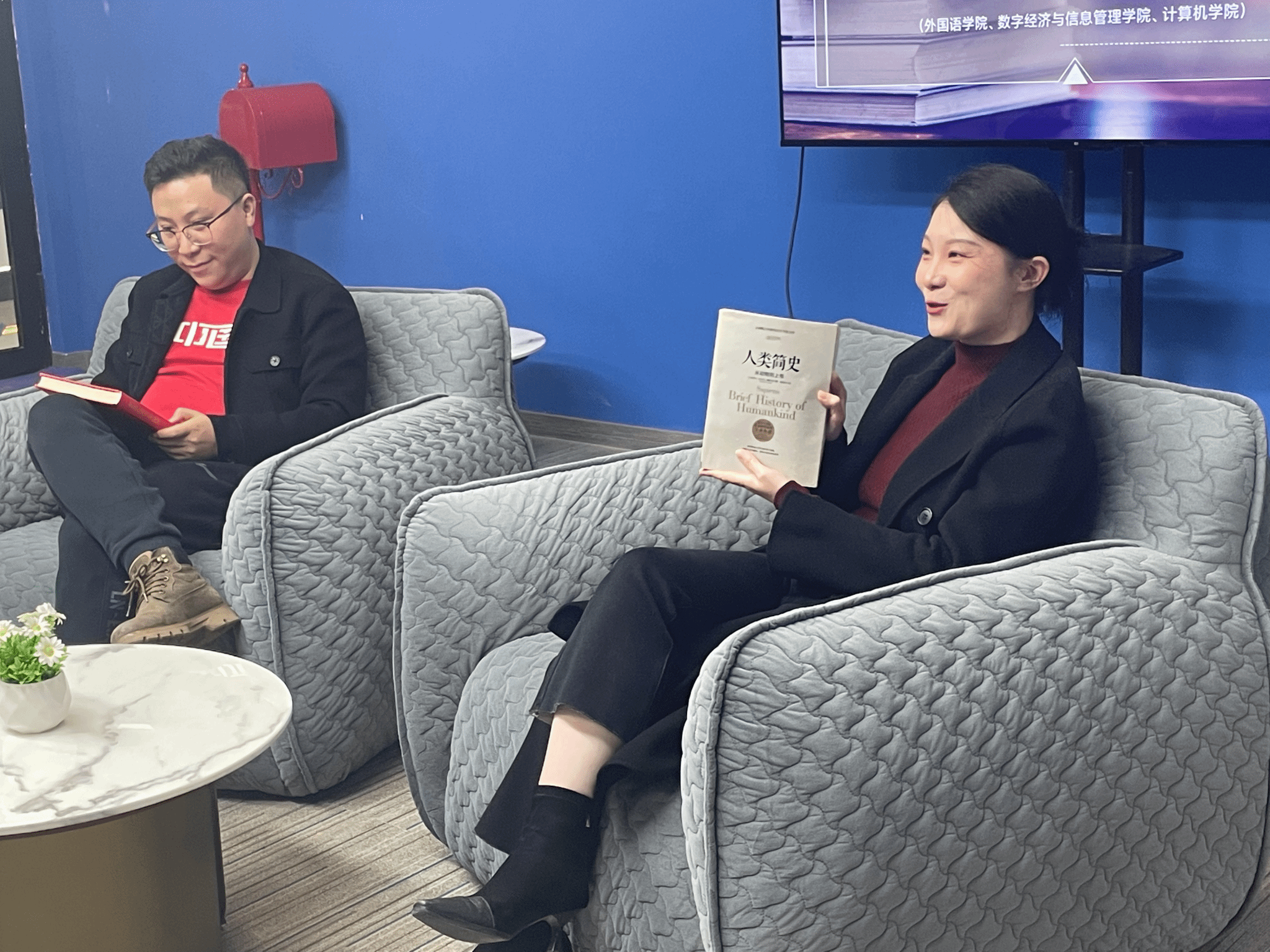 11月22日16:00,在天空书院浩瀚家文化体验室,外语学院、计算机学院、数字经济与信息管理学院的异科导师陈雪梅、刘方旺、张月,组织所带异科班的学生举行了一场别开生面的读书分享会。不同专业的同学齐聚,共同分享、交流自己的书单和感悟,充分表达书籍带给自己的收获与成长,点燃了学生的阅读激情。