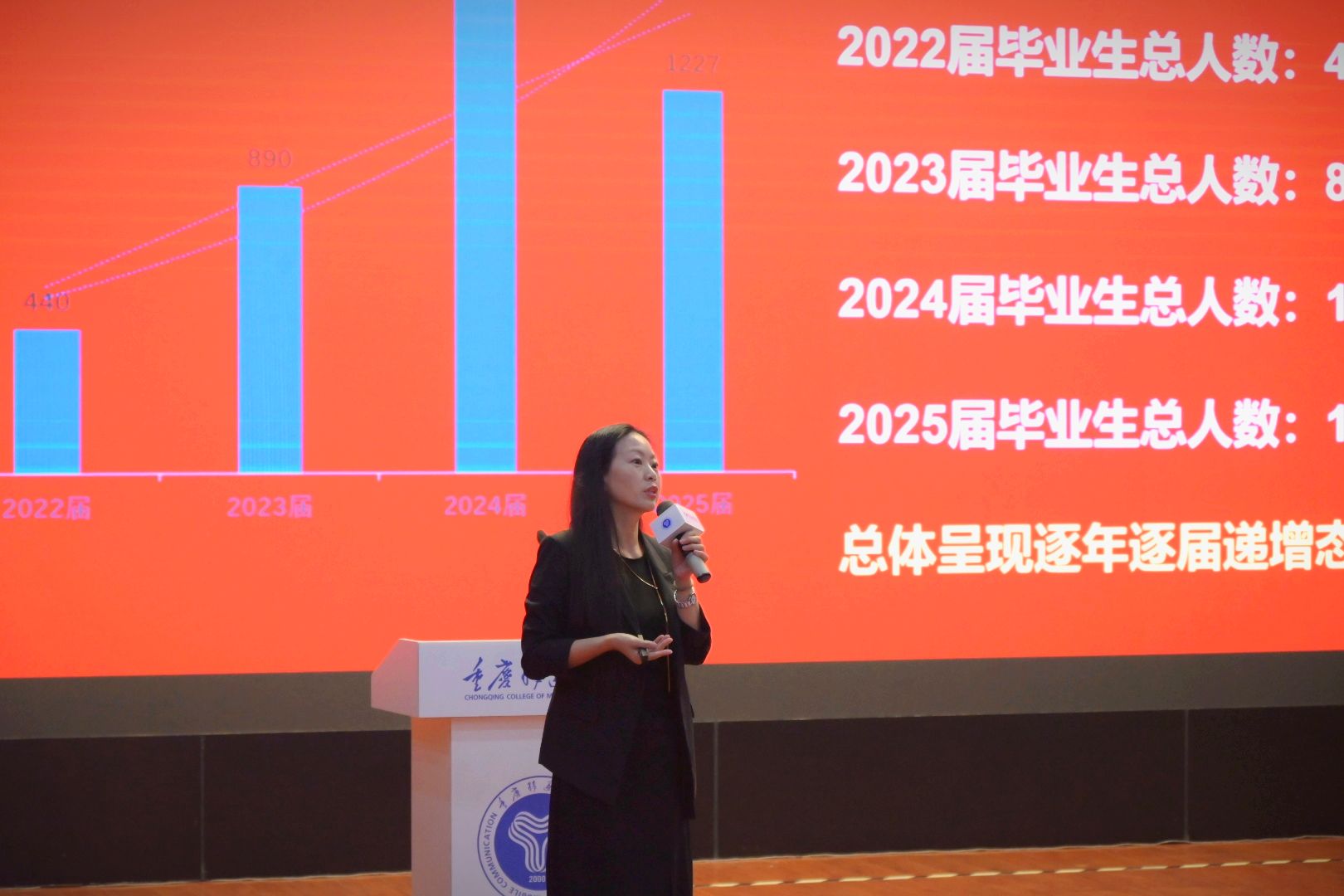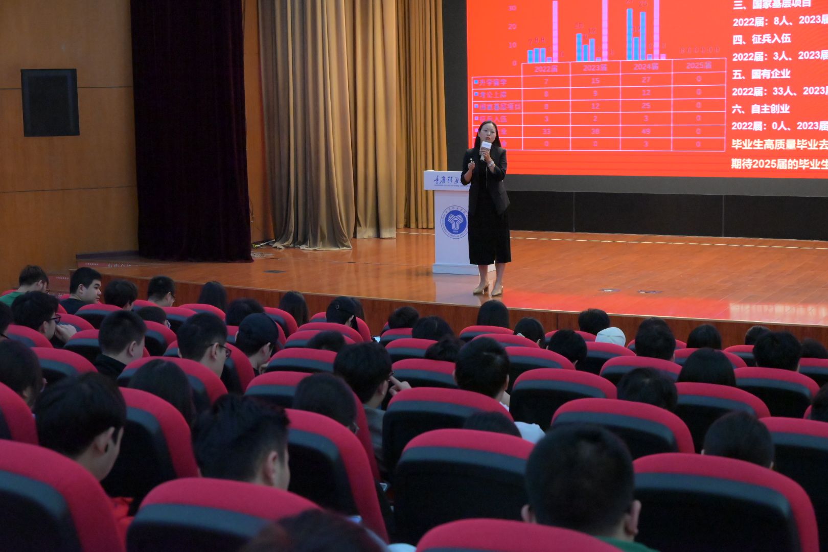 会议伊始,刘院长深入剖析2022至2025届毕业生的规模趋势和就业市场的现状,强调自我认知对职业发展至关重要。并指出无论是追求国有企业的稳定,公务员岗位的公共服务精神,还是民营企业的创新活力,关键在于清晰地认识自我,确立明确的职业目标。刘院长深入解读2025届毕业生的就业意向调研数据,细致阐述国家和学校在就业相关政策支持,并激励学生们积极回应国家的号召,投身于军队、基层和小微企业等。同时,面对就业市场的诸多挑战,刘院长还指出,尽管面临一些挑战,但毕业生们应保持乐观态度,积极面对就业市场的变化,行动起来,积极地投递简历,勇敢地参加面试,把握每一次机遇,以实现自己的职业梦想。最后指出毕业生应树立正确的择业观,将个人职业期望与社会需求相结合,立足现实,面向未来,既不盲目追求,也不消极等待。