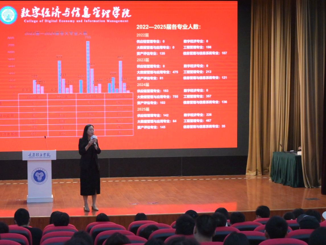 在秋意渐浓的季节,数字经济与信息管理学院于2024年10月23日10:00在下里巴人成功召开2025届毕业生就业形势分析暨就业动员大会。本次会议邀请到数字经济与信息管理学院院长刘贵容教授,教学副院长王哲副教授,学工副院长任瑞娟副教授,以及教研室主任、学办主任、团总支书记、就创办主任、骨干教师代表、毕业实习指导老师代表、全体辅导员和部分学生代表出席此次活动。本次大会旨在全方位、多角度地促进毕业生就业工作,助力毕业生顺利踏入社会的大门。